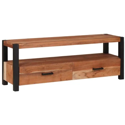The TV Cabinet is a chic accent that blends into modern living spaces, offering both style and functionality. The geometric lines and the lively hue of the brown finish deliver an elegant contrast against any interior backdrop, highlighting a bold aesthetic while adding charm to both contemporary and traditional living rooms. With its sturdy frame crafted from solid acacia wood, this cabinet not only adorns your living space but also supports your electronic media essentials with reliability. Whether placed in the heart of your living room or cozy entertainment nook, this cabinet enhances the experience with dedicated compartments that meticulously house your media needs. Its adaptable design embraces flexibility, seamlessly transitioning from an everyday storage piece to a focal point when entertaining guests. The thoughtful structure ensures an organized environment, offering easy access to stored items while discreetly concealing unnecessary clutter. Materials: Constructed from premium-grade solid acacia wood, this TV Cabinet ensures longevity and robust support for your television and media components. The acacia wood's sturdiness presents both a practical and aesthetic appeal, displaying a rustic grain while being resistant to wear and weather conditions. With this robust construction, users gain a resilient addition to their furnishings that delivers on both performance and elegance. Included Components: The unit provides ample compartments adapted to house media gadgets and essentials. Each compartment is designed to hold various electronic components—notably accommodating a spectrum of devices while maintaining a clutter-free space. Reflecting an essential blend of practicality and style, these features make this unit a versatile asset for organizing entertainment gear. Features /Function /Design: Despite its compact structure, it offers generous storage space, balancing form and function in a design that's characterized by its simplicity and restrained ornamentation—ideal for urban settings. Its dimensions ensure intricate arrangements are feasible and enable reconfigurations in alignment with varied spatial needs, maximizing room usage without compromising design ideals. Recommended Uses: Due to its measured dimensions and practical design, the cabinet is well-suited for use in living rooms but equally at home in dens, studies, or bedrooms needing efficient storage solutions. Designed to align with a contemporary lifestyle, it merges the casual with the elegant, becoming a centerpiece in any environment that prioritizes functionality and clean design. Care &Maintenance: Preserve the quality of the solid acacia wood by routinely wiping with a dry cloth to manage dust build-up without abrasive means or harsh chemicals. Avoid prolonged exposure to direct sunlight to maintain wood finish integrity. This easy routine contributes to the product's lasting appeal and functional longevity, making it a trusted companion in your household for years.