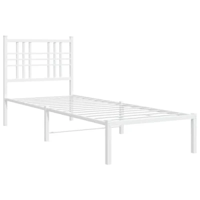 vidaXL Metal Bed Frame Small Single with Headboard White Steel, 75x190 cm, Ideal for Bedroom, Modern Design, Added Storage Space