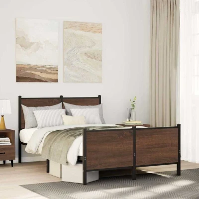 vidaXL Metal Bed Frame with Headboard and Footboard Brown Oak 120x200 cm