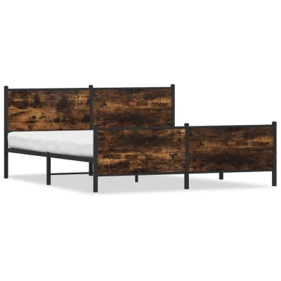 vidaXL Metal Bed Frame with Headboard and Footboard, Super King 180x200 cm Smoked Oak, Steel Engineered Wood