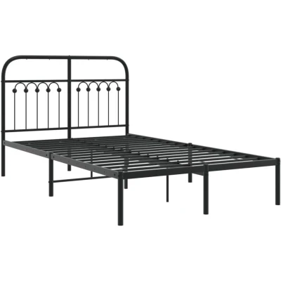 vidaXL Metal Bed Frame with Headboard Black Steel Small Double 120x190 cm Extra Storage Space and Excellent Support