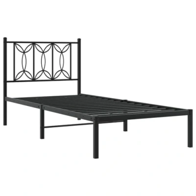 vidaXL Metal Bed Frame with Headboard Single Bed, Black Steel, 80x200 cm, Extra Storage Space, Modern Bedroom Furniture