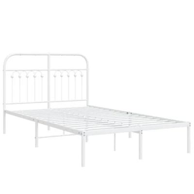 vidaXL Metal Bed Frame with Headboard White Steel, Small Double 120x190 cm Ideal for Bedrooms Extra Storage Space and Excellent Support