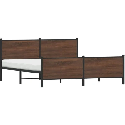 vidaXL Metal Bed Frame with Headboard/Footboard in Brown Oak Steel Construction 193x203 cm