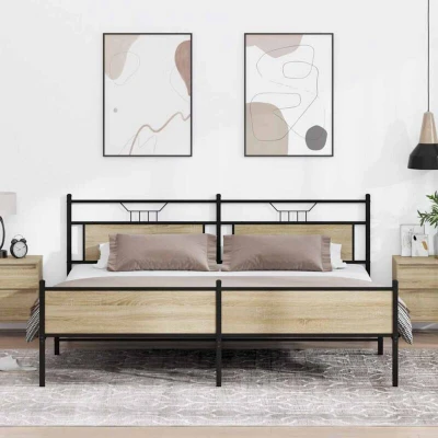 ManoManoGeneral description Get a better restful night's sleep with this stylish Metal Bed Frame in Sonoma Oak. It makes a welcoming addition to any bedroom, providing both comfort and functionality. Technical specifications Colour: Sonoma oak Material: Steel, engineered wood Overall dimensions: 207 x 207 x 91.5 cm (L x W x H) Suitable mattress size: 200 x 200 cm (W x L) (mattress not included) Assembly required: Yes Usage Stable and long-lasting frame: Made from strong and durable steel, ideal for various applications. Slatted base for optimal support: Provides breathability and support for your mattress. Stable and durable legs: Ensures stability, safety, and firmness. Functional headboard and footboard: Keeps your mattress in place and offers excellent back support for sitting up in bed. Extra storage space: Features space underneath for convenient storage of boxes. Other information