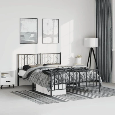 vidaXL Metal Bed Frame without Mattress with Footboard Black 193x203cm
