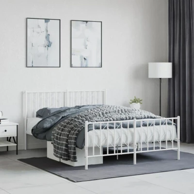 vidaXL Metal Bed Frame without Mattress with Footboard White 140x190cm