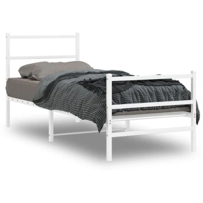 vidaXL Metal Bed Frame without Mattress with Footboard White 75x190cm