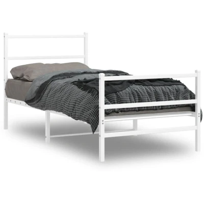 vidaXL Metal Bed Frame without Mattress with Footboard White 90x190cm