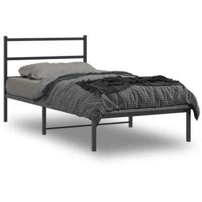 vidaXL Metal Bed Frame without Mattress with Headboard Black 107x203cm