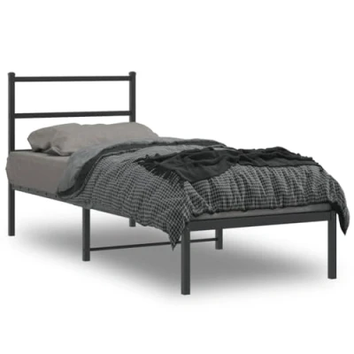 Vidaxl Metal Bed Frame without Mattress with Headboard Black 75x190cm
