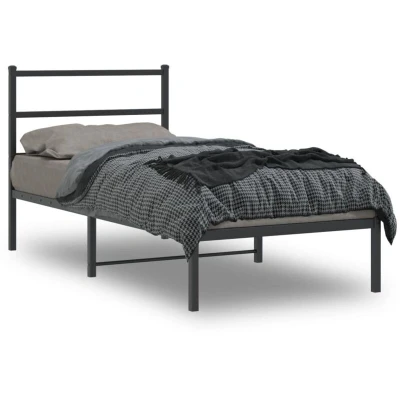 vidaXL Metal Bed Frame without Mattress with Headboard Black 90x200cm