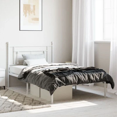 vidaXL Metal Bed Frame without Mattress with Headboard White 107x203cm