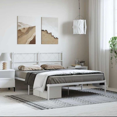 ManoManoGeneral description If you are looking for a robust bed frame for your bedroom, then this classic metal bed frame featuring an elegant and timeless design is the perfect choice for you! The bed frame is made from powder-coated steel, which is exceptionally hard and strong, offering outstanding sturdiness and stability. It includes metal slats and center legs to provide your mattress with essential support and breathability. Additionally, the bed features extra storage space underneath for keeping your storage boxes out of sight, and the headboard provides excellent back support when sitting up in bed to read or watch TV. Technical specifications Colour: White Material: Steel Overall dimensions: 196 x 142 x 90 cm (L x W x H) Clearance height under the bed: 26 cm Suitable mattress size: 135 x 190 cm Double (W x L) (mattress is not included) Assembly required: Yes Other information