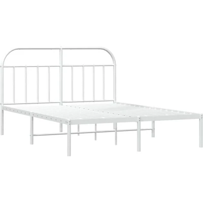 vidaXL Metal Bed Frame without Mattress with Headboard White 150x200cm