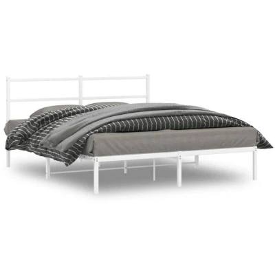 vidaXL Metal Bed Frame without Mattress with Headboard White 150x200cm
