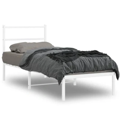 vidaXL Metal Bed Frame without Mattress with Headboard White 75x190cm