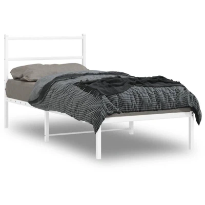 vidaXL Metal Bed Frame without Mattress with Headboard White 90x200cm