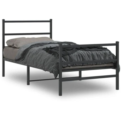 vidaXL Metal Single Bed Frame with Headboard and Footboard Robust Powder Coated Steel in Black Bedroom Furniture Extra Storage Space 90x190 cm Mattress Compatible
