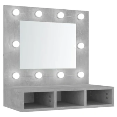 ManoManoGeneral description Add a touch of pleasing aesthetic looks to your room with this mirror cabinet featuring LED lights. The cabinet is designed to enhance your beauty routine while providing ample storage for your essentials. Technical specifications Colour: Concrete grey Material: Engineered wood, acrylic Dimensions: 60 x 31.5 x 62 cm (W x D x H) Maximum load capacity (total): 50 kg Power: DC 5V (USB power source not included) Compatibility and accessories LED bulbs with USB for easy switching between warm and cold white light Assembly manual included Screw(s) and plug(s) for wall mounting are not included; use suitable ones for your walls Installation Can be placed on a dresser or mounted on the wall to save floor space Usage Ideal for storing beauty essentials and enhancing your daily routine Other information Do not use this item if any components are broken, torn, or missing. Higher voltage may cause overheating and potential fire risk.