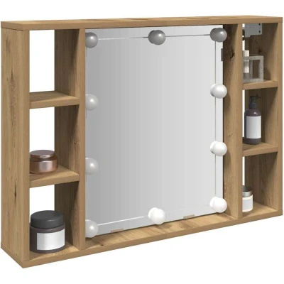 vidaXL Mirror Cabinet with LED Lights 6 Compartments Wall Mounted Artisan Oak Bathroom Storage
