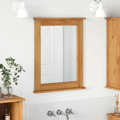 ManoManoGeneral description This classy yet practical bathroom mirror with storage is a stylish addition to any bathroom. Made from solid pine wood, it brings natural warmth and sophistication that fits various bathroom styles. With smart storage options, it helps keep things organized, perfect for anyone wanting both style and function in smaller spaces. The sleek mirror surface enhances your bathroom's sense of space, blending well with both traditional and modern vibes. Technical specifications Material: Solid pine wood Colour: Honey brown Overall dimensions: 55.5 x 5 x 70 cm (W x L x H) Assembly required: Yes Range name: Vigo EAN: 8721158511478 SKU: 4019125 Compatibility and accessories Indoor use only Delivery contains: 1 x Mirror Usage Ideal for keeping bathroom essentials organized with built-in compartments. Perfect for small flats or ensuites due to its compact design. Other information