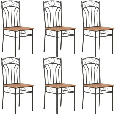 vidaXL Modern 6 pcs Dining Chairs Set with MDF and Steel Frame Farmhouse Style Ergonomic Indoor Furniture for Kitchen, Room or Office Brown