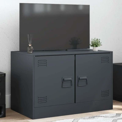 ManoManoGeneral description This sturdy TV cabinet is designed to be a focal point of your room with a trendy yet practical design. It features a stable frame made of cold-rolled steel, providing a smooth surface, greater strength, and higher precision. The cabinet offers ample storage space for magazines, books, remote controls, and other small items, keeping them well-organized and within reach. Additionally, it is easy to maintain and clean with a damp cloth. Technical specifications Colour: Anthracite Material: Cold-rolled steel Dimensions: 67 x 39 x 44 cm (W x D x H) Suitable TV screen size: 51-76 cm Maximum load capacity: 70 kg 2 compartments with doors 2 metal handles Assembly required: Yes Other information