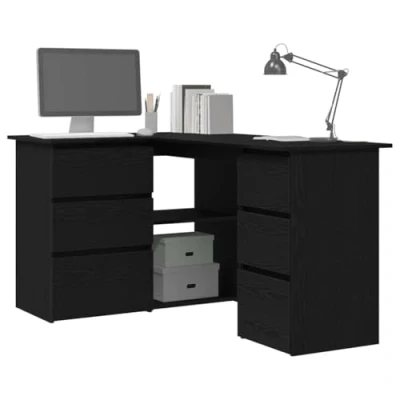 vidaXL Modern Black Oak Corner Desk with Large Storage Space Stylish Saving L shaped Design, Ideal for Home Offices and Study Use, 145 x 100 76 cm Workplace Furniture