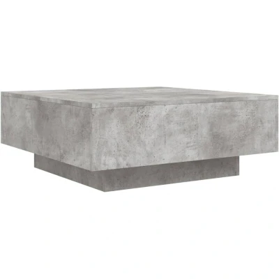 ManoManoGeneral description Enhance your living space with this modern coffee table featuring LED lights. Its contemporary design allows it to seamlessly blend with various furniture styles, making it a versatile addition to your home. Technical specifications Colour: Concrete grey Material: Engineered wood Dimensions: 80 x 80 x 31 cm (W x D x H) Power: DC 5V (USB power source not included) Compatibility and accessories Requires a certified 5V USB power source (not included) Installation Assembly required: Yes Usage This coffee table can serve multiple purposes, functioning as a side table, tea table, or telephone table. The adjustable RGB LED lights allow you to customize the ambiance of your space effortlessly. Other information Do not use this item if any components are broken, torn, or missing. Higher voltage may cause overheating and damage to the device, posing a risk of fire.