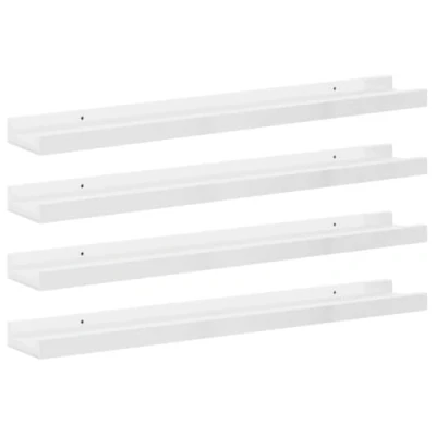 vidaXL Modern High Gloss White Wall Shelves, Practical and Decorative Mounted MDF Ideal for Living Room, Bedroom, Office Set of 4