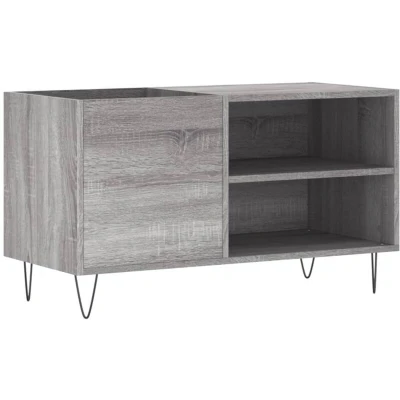 vidaXL Modern Record Cabinet in Grey Sonoma Engineered Wood Vinyl Storage with Industrial Iron Feet