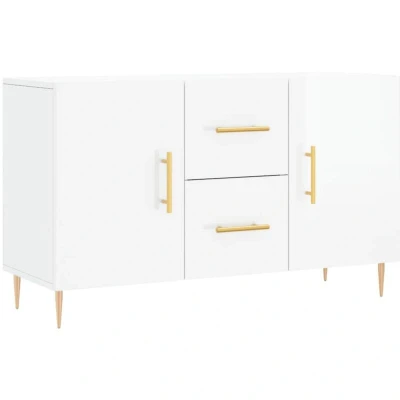 vidaXL Modern Sideboard in High Gloss White Engineered Wood Construction, Metal Legs, Ample Storage Space Living Room, Bedroom Furniture