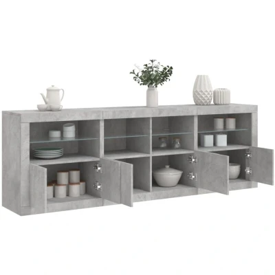 vidaXL Modern Sideboard with Customizable LED Lights Durable Side Cabinet Ample Storage and Display Functionality Concrete Grey