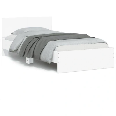 vidaXL Modern Single Bed Frame in White with Headboard/LED Lights Engineered Wood Bedroom Furniture, 100x200 cm