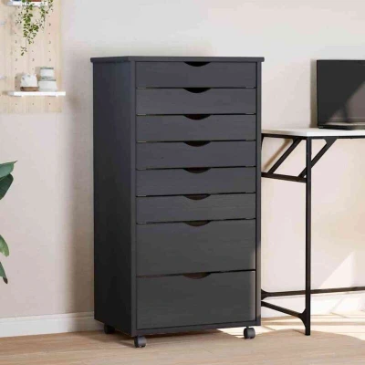 vidaXL Modern Solid Pine Wood Rolling Cabinet with Drawers Organiser Trolley for Home and Office Grey
