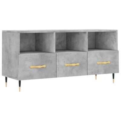 vidaXL Modern TV Cabinet Engineered Wood Media Unit with Iron Legs Concrete Grey 3 Drawers and Compartments For Storage Living Room or Bedroom