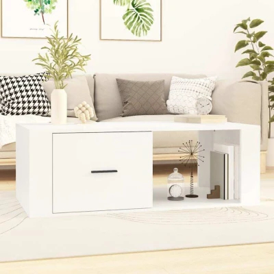 vidaXL Modern White Coffee Table with Drawer and Open Compartment Engineered Wood Rectangular Side for Living Room