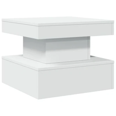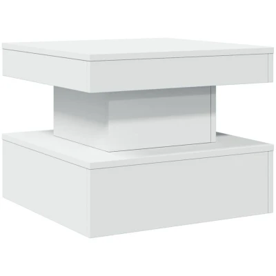 vidaXL Modern White Engineered Wood Coffee Table with RGB LED Lights 50x50x40cm Hall End Side Sofa for Living Room/Office