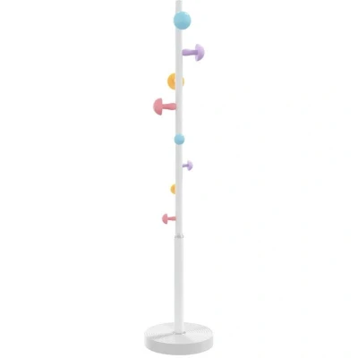 ManoManoGeneral description This practical coat stand will keep your belongings organized and easily accessible. With a sturdy and durable design, it is perfect for placing in your hallway, living room, bedroom, or anywhere you need to keep your home clean and tidy. Technical specifications Height: 172 cm Bottom diameter: 35 cm Maximum load capacity (per hook): 3 kg Material: Powder-coated iron Base material: Plastic cover with cement inside Tube colour: White Bottom colour: White Features colourful hooks Assembly required: Yes Usage Includes 8 storage hooks to provide ample space for hanging items such as clothing, bags, hats, and more. Hooks are positioned at different levels to help store your belongings in an orderly manner. Other information