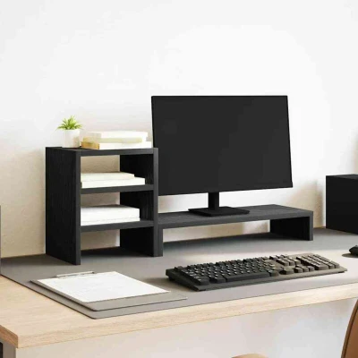 vidaXL Monitor Stand with Desk Organiser Black Oak Engineered Wood