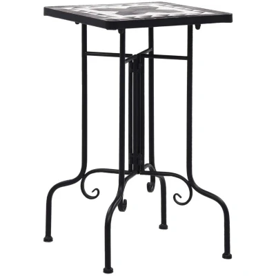 General description This elegant black and white ceramic mosaic side table is perfect for outdoor use, featuring a weatherproof mosaic tabletop and stylish curved legs. It serves as a functional piece that can also be used as a flower plant holder, making it an eye-catching addition to your garden, balcony, or terrace. Technical specifications Colour: Black and white Material: Iron tube + ceramic tile Dimensions: 35 x 35 x 56 cm (W x D x H) Installation Easy to assemble Usage Not suitable to be left outside in cold conditions Other information