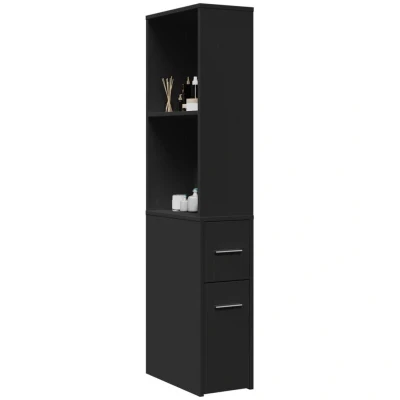 vidaXL Narrow Bathroom Cupboard with Wheels Black Engineered Wood Storage Cabinet Tall, Slim, Ample 22x41x135cm