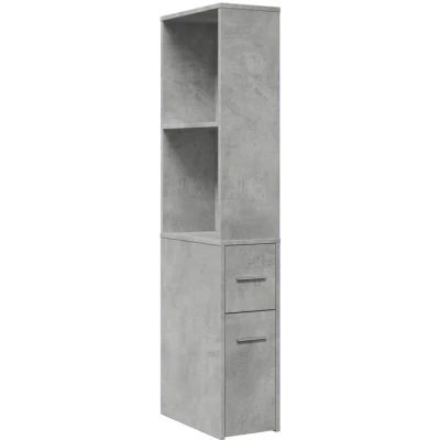 ManoManoGeneral description This classic narrow bathroom cupboard is a decorative and practical addition to your home. It provides ample storage space to keep your daily essentials well organized and protects your items from dust and dirt. The cupboard features quality metal runners and elegant handles for smooth movement, making it easy to access your stored items. With two wheels, it can be easily relocated to suit your needs. Technical specifications Colour: Concrete grey Material: Engineered wood Overall dimensions: 22 x 41 x 135 cm (W x D x H) Drawer dimensions: 18 x 33.5 x 21/38 cm (W x D x H) Shelf dimensions: 37.5 x 22 x 35 cm (W x D x H) Loading capacity of top shelf: 40 kg Loading capacity per shelf: 20 kg Loading capacity of drawer: 8 kg Overall loading capacity: 80 kg Assembly required: Yes Installation To prevent tipping, this product must be used with the provided wall attachment device. Screws and plugs for wall attachment are not included; use suitable ones for your walls. If