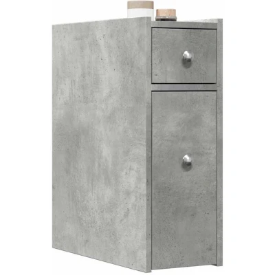 ManoManoGeneral description This classic narrow bathroom cupboard is a decorative and practical addition to your home. It provides ample storage space to keep your daily essentials well organized and protects your items from dust and dirt. The cupboard features quality metal runners and elegant handles for smooth movement, making it easy to access your stored items. With two wheels, it can be easily relocated to suit your needs. Technical specifications Colour: Concrete grey Material: Engineered wood Overall dimensions: 21.5 x 50 x 60 cm (W x D x H) Drawer dimensions: 18 x 42 x 42 cm (W x D x H) Top drawer dimensions: 18 x 18.5 x 13 cm (W x D x H) Loading capacity of top shelf: 20 kg Loading capacity per drawer: 8 kg Overall loading capacity: 50 kg Assembly required: Yes Other information Warning: To prevent tipping, this product must be used with the provided wall attachment device. Screw(s) and plug(s) for wall attachment are not included; use suitable ones for your walls. If uncertain,