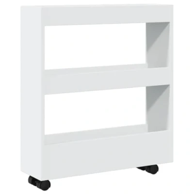 VidaXLThis narrow storage trolley is meant to be a decorative and practical addition to your home. Stable and durable material: Engineered wood is a durable and stable material with a smooth surface that is resistant to moisture, warping, and splitting, making it a reliable choice for a variety of projects.Ample storage space: The slim storage trolley provides ample storage space for keeping your various daily essentials well organised and within easy reach.Easy to move: This rolling cart, with the included four swivel wheels, can be easily moved to the desired place. The two wheels are lockable, which keeps the cabinet in position and adds stability.Wide applications: Depending on your needs, you can use this storage trolley in the living room, kitchen, or bathroom thanks to its narrow shape, even in small spaces.