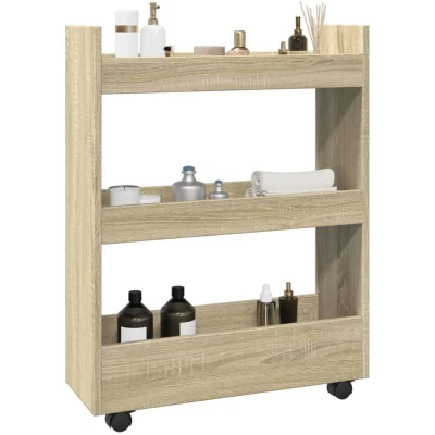 vidaXL Narrow Storage Trolley 3 Tier Shelf Rolling Cart Engineered Wood, Sonoma Oak Living Room/Kitchen Use 60x22x80 cm