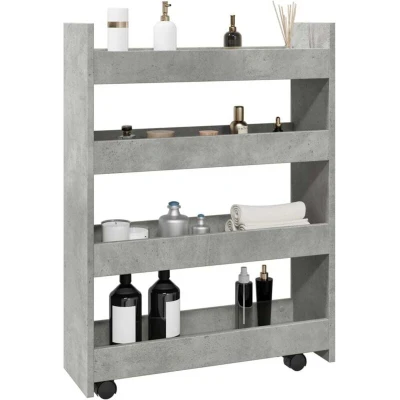 vidaXL Narrow Storage Trolley 4 Tier Slim Bookcase, Concrete Grey Engineered Wood, for Living Room, Kitchen, or Bathroom Mobile, Compact Solution