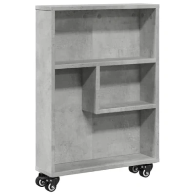 ManoManoGeneral description This narrow storage trolley is a decorative and practical addition to your home. It provides ample storage space for keeping your daily essentials organized and within easy reach. The slim design makes it suitable for various spaces, including the living room, kitchen, or bathroom, even in small areas. Technical specifications Colour: Concrete grey Material: Engineered wood Overall dimensions: 48 x 13 x 68 cm (W x D x H) Number of wheels: 4 (2 have brakes) Loading capacity per shelf: 15-20 kg Overall loading capacity: 60 kg Assembly required: Yes Usage This rolling cart can be easily moved to your desired location thanks to the four swivel wheels. The two lockable wheels ensure stability when needed. You can keep your toiletries or other items accessible by leaving them open, or hide the contents by placing the trolley with an open side against the wall. Other information