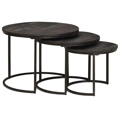 This set of nesting coffee tables brings together the natural beauty of solid mango wood and the industrial charm of powder-coated steel. The tables are designed to complement a modern interior with their streamlined, round silhouette and minimalistic appeal. Ideal for living rooms, these tables offer a versatile solution for displaying decorative items, holding beverages, and organizing magazines or books. The combination of materials and thoughtful design creates a focal point that balances style with functionality. High-Quality Materials Crafted from solid mango wood, these tables boast a rich, organic texture and eye-catching grain patterns. The top is supported by a robust frame made from powder-coated steel, ensuring stability and longevity while retaining a modern, industrial vibe. Nesting Functionality With a unique nesting capability, these tables are perfect for compact spaces. The smaller table fits neatly under the larger one, which makes it easy to reclaim floor space when not in use. Their practical design allows for easy movement and configuration within any setting. Versatile Use Designed as a trio, these tables serve multiple purposes. They act as excellent surfaces for decor, snacks during gatherings, or a spot to set your morning coffee. The round shapes are kid-friendly, minimizing sharp edges and promoting a safer, warmer atmosphere in the living room. Minimal Assembly Required Assembly requires a straightforward process which may involve using basic tools. Clear instructions guide you through each step, ensuring a hassle-free setup to integrate these versatile tables into your space swiftly. Maintenance Tips The wooden surface should be cleaned using a dry cloth to maintain its natural beauty. Avoid harsh chemicals that may damage the wood or steel; instead, gently buff it to restore its lustre when needed. Proper care ensures prolonged use and enduring aesthetic appeal.